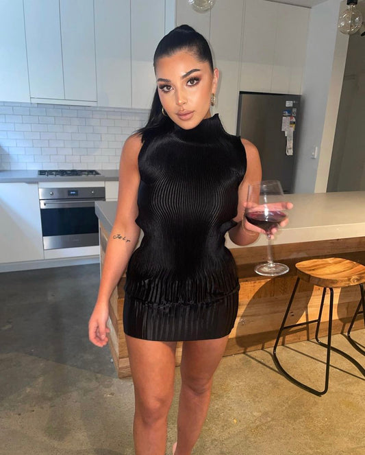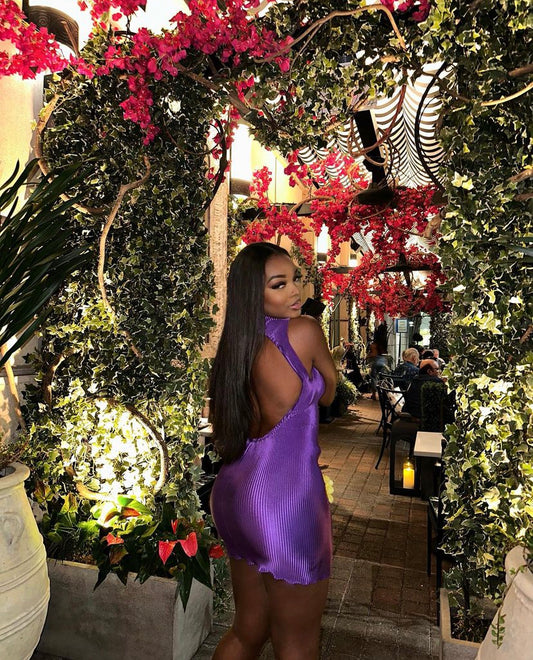 L’idee Soiree Pleated Halter Dress in Ice Pink