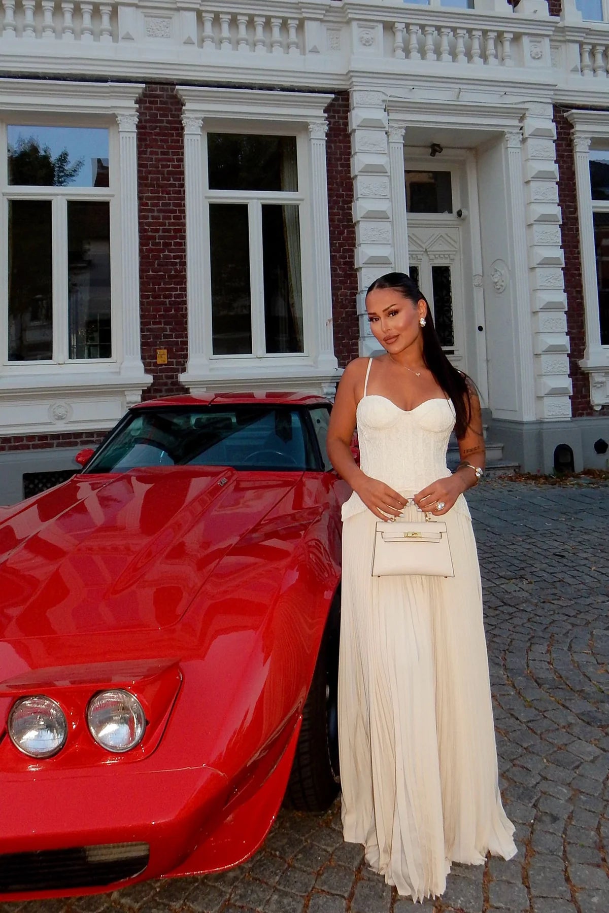 • Please be mindful of where you are sitting in this garment/ handbags rubbing against the material as rough surfaces can create pulls in this fabric and you will be charged for any damage - this dress is satin which is prone to pulling, be extra careful as you will be charged for excessive pulls.